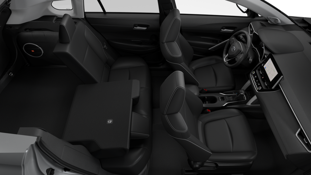 - Rear fold-down center armrest with two cup holders